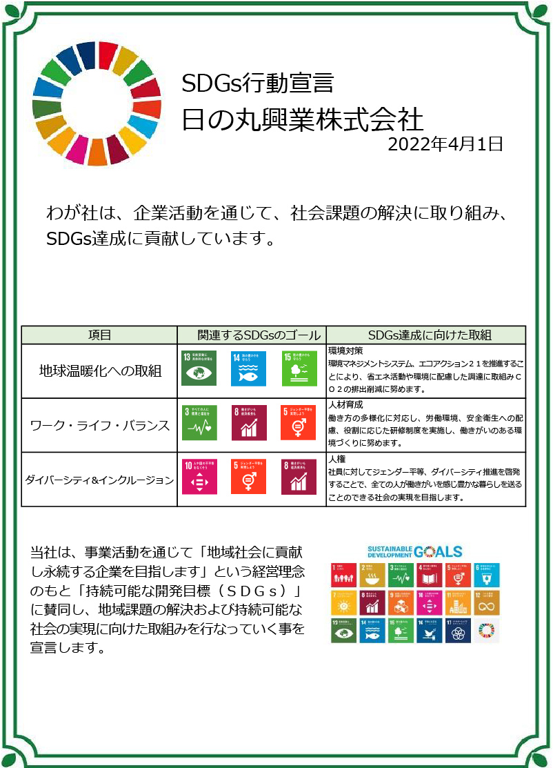 日の丸グループは公正で適切な経営を実現し、企業に与えられた社会的責任を果たしていくために一人ひとりが日常の活動を改めて振り返り、正しい意志決定や行動を行うよう、コンプライアンス精神の浸透に努め、信頼される企業を目指していきます。