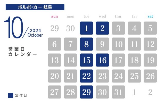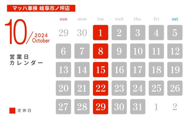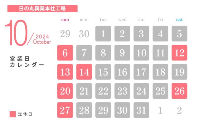 10月定休日のお知らせ